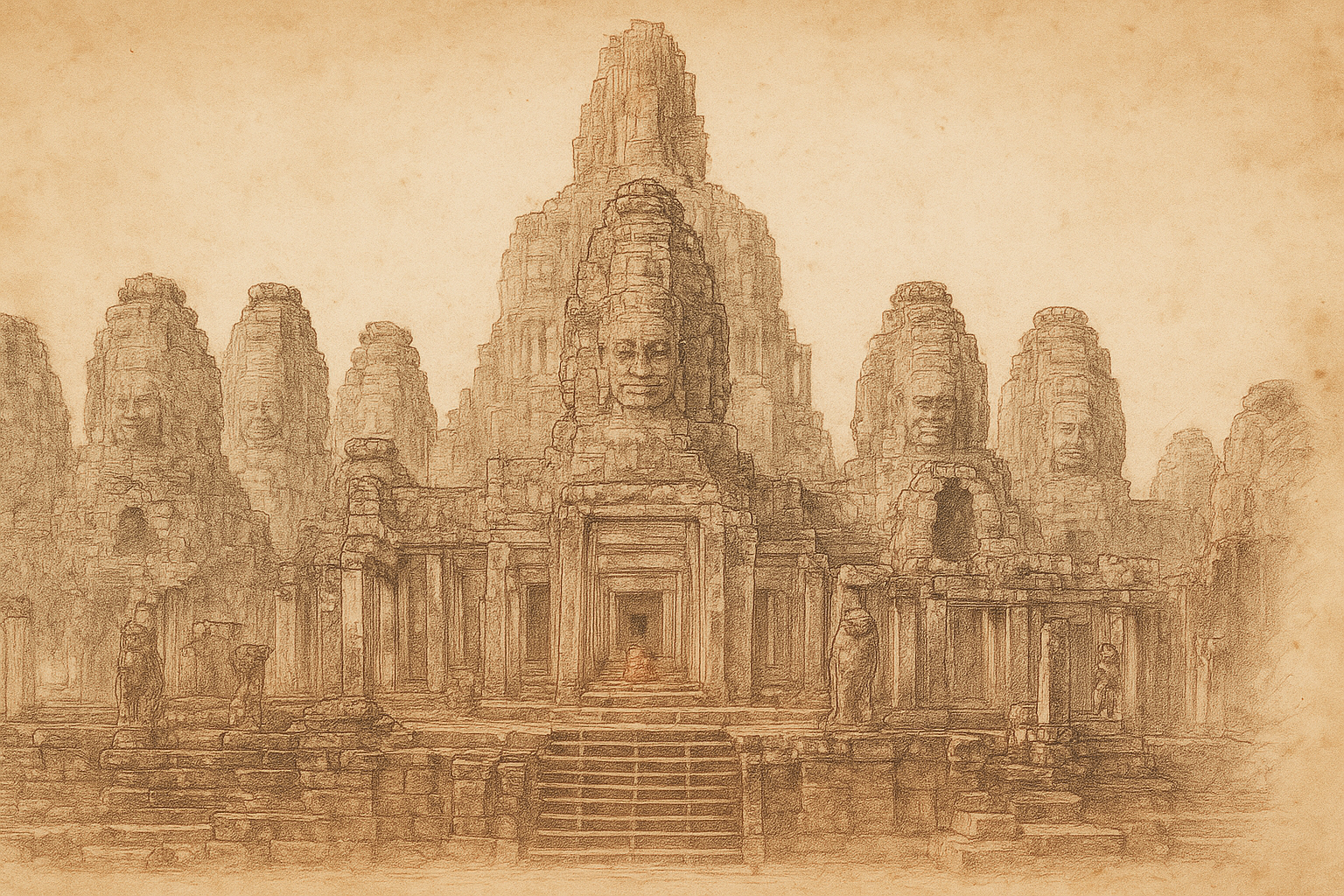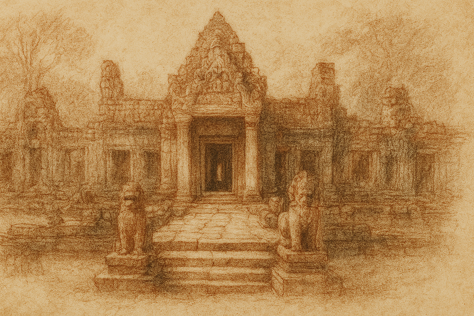 Within these shelves you will find many rooms — journals of Angkor, mythic retellings, meditations on apsaras, and essays on the meaning of sacred stone. Wander chronologically, or enter by theme.