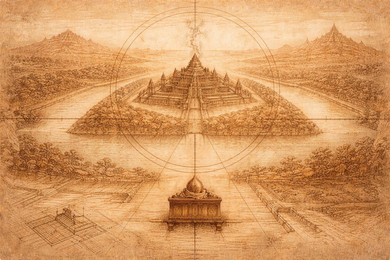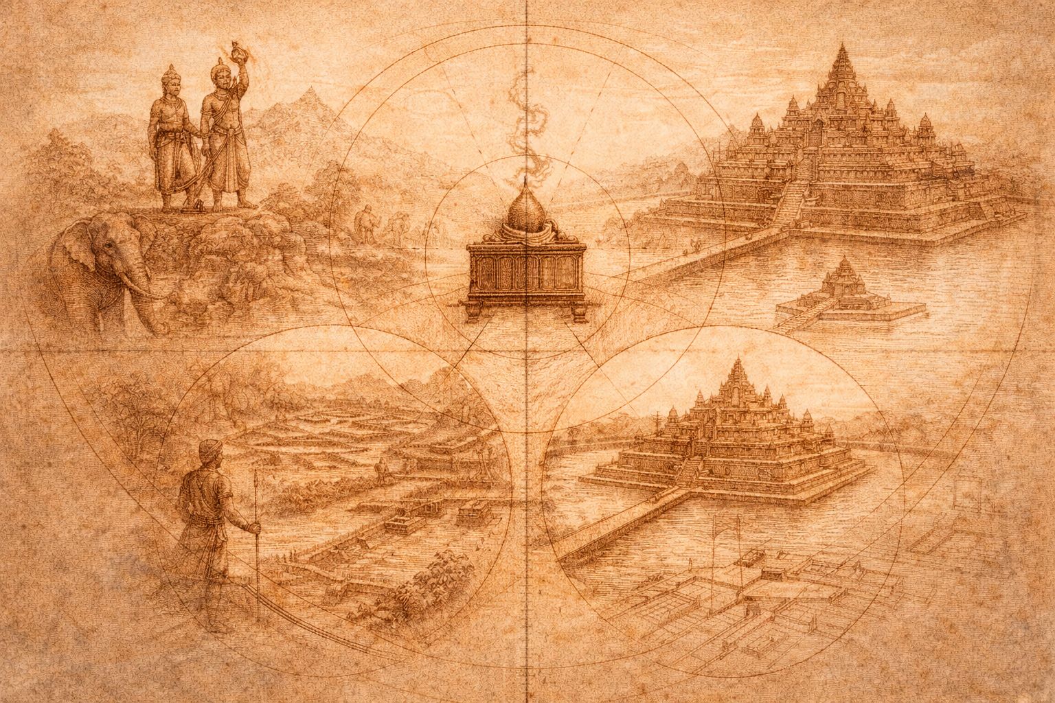 At Angkor, sovereignty was built as a system. The Devarāja fixed the unseen centre, the temple-mountain raised the world’s axis in stone, and the baray extended that order into water and rice. Power endured because it was aligned—repeated, measured, and made legible to the land itself.