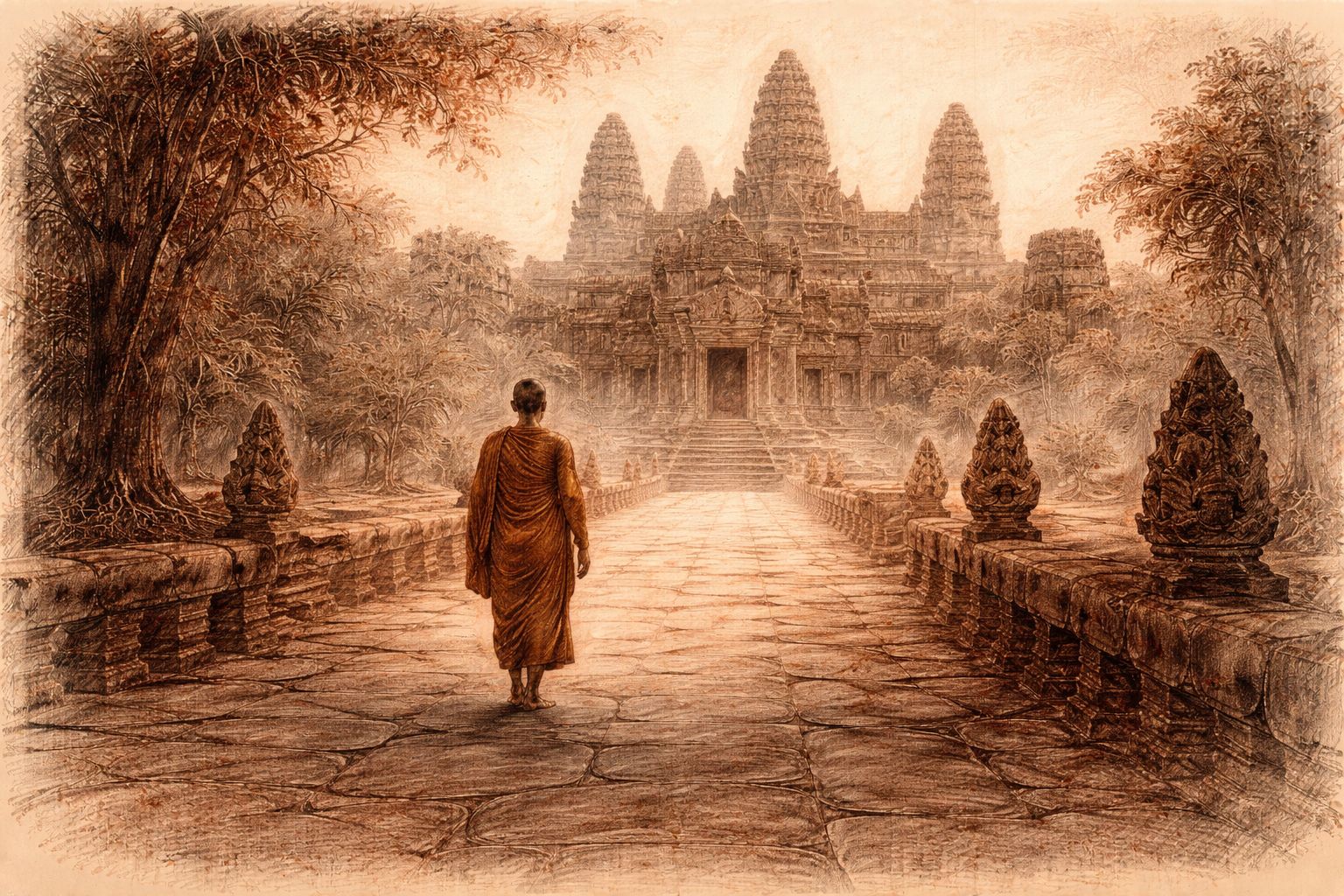 Step barefoot into the hush of Angkor, where carved stone remembers the shape of prayer, and the breath between gods and kings still lingers in the light. Here, myth and devotion flow like hidden rivers beneath the ancient ground, inviting the soul to listen where language ends.