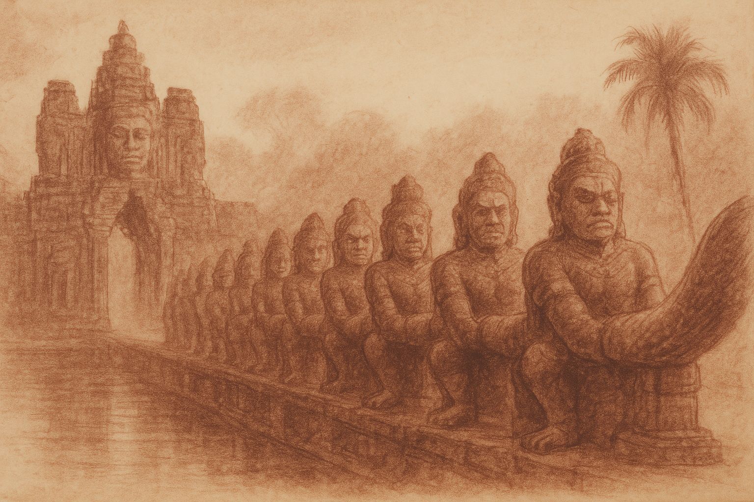 At the gates of Angkor Thom, gods and demons share a single serpent.