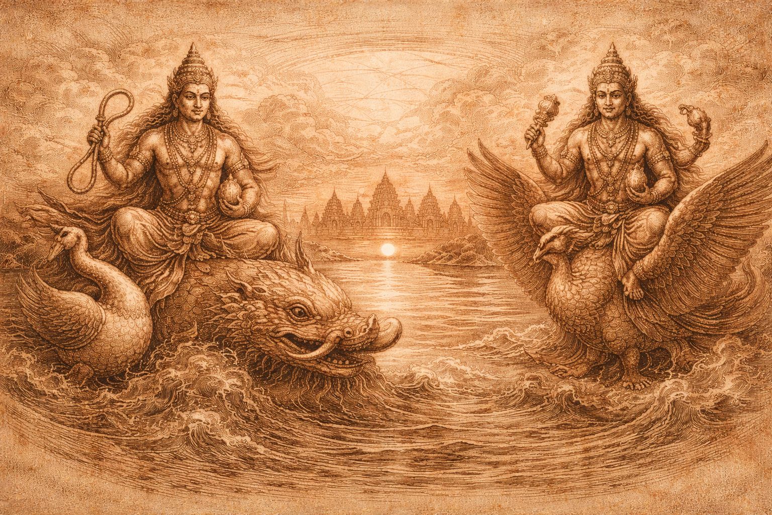 This essay traces the quiet handover of the western quarter from Varuna to Vishnu—revealing how judgement became preservation, restraint became endurance, and Angkor’s westward temples embodied not rupture, but a continuous moral horizon carved into stone.