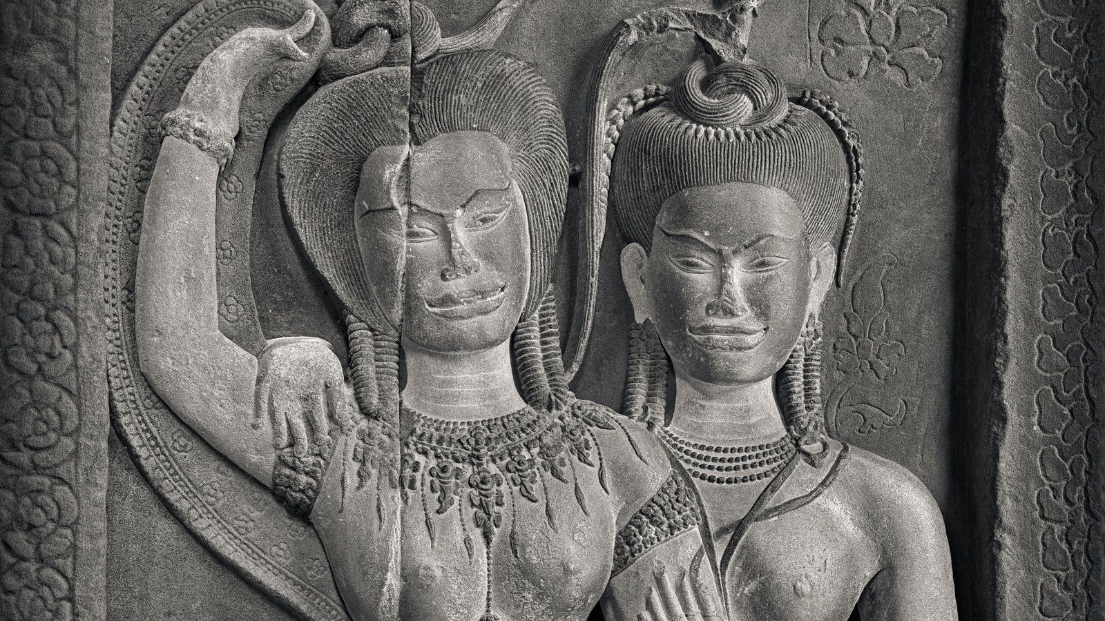 In the Cruciform Galleries of Angkor Wat, two apsaras lean together in golden hush—an eternal caress remembered through stone, through time, through light. This is their story, and the silence that first called me to them.